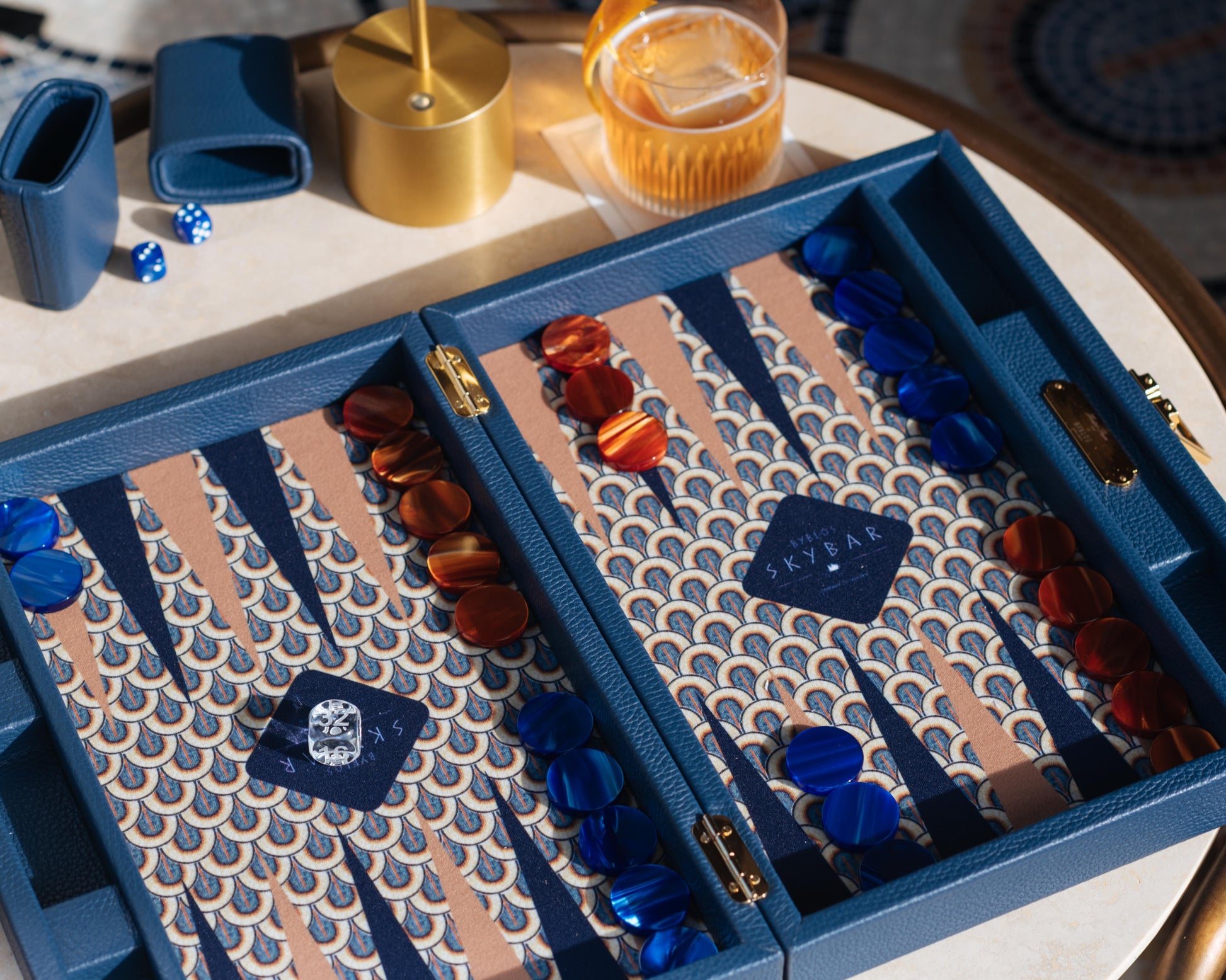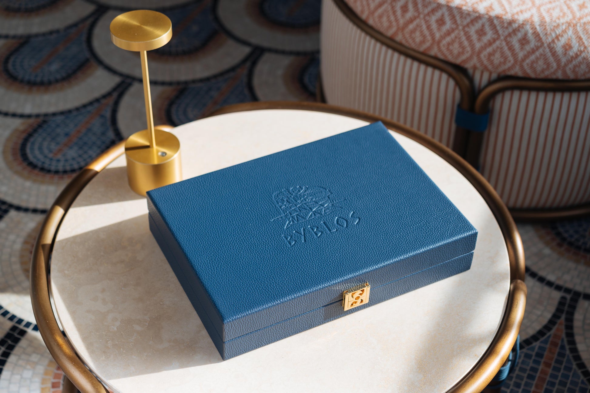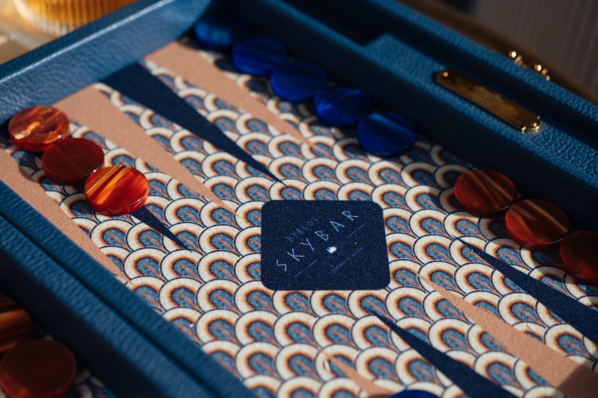 Crafted from buffalo leather in a vibrant shade of blue, this backgammon set is elevated by the iconic Byblos symbol, delicately embossed with precision.