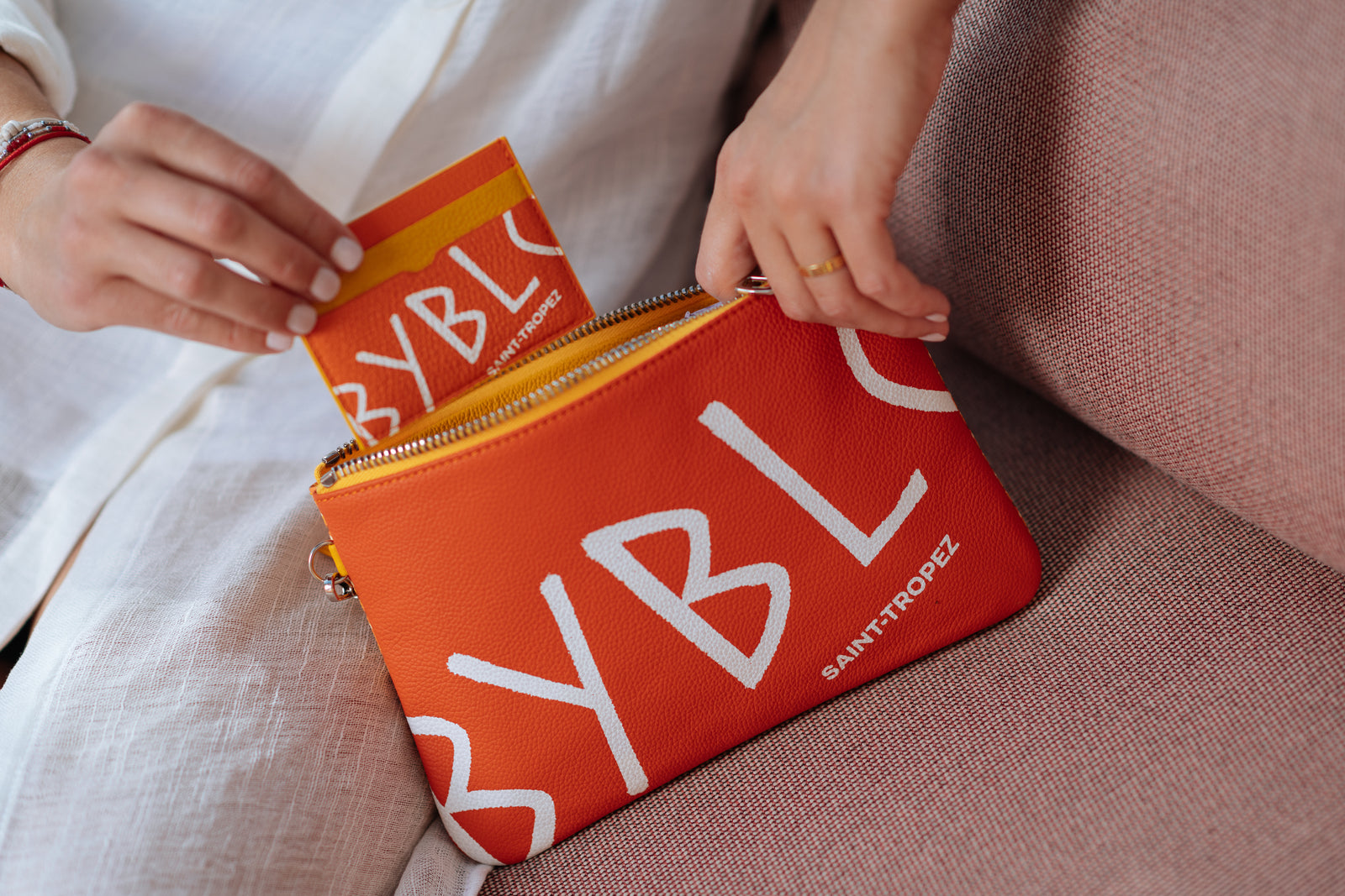 Colors/tones: clementine coated canvas and yellow and orange leather