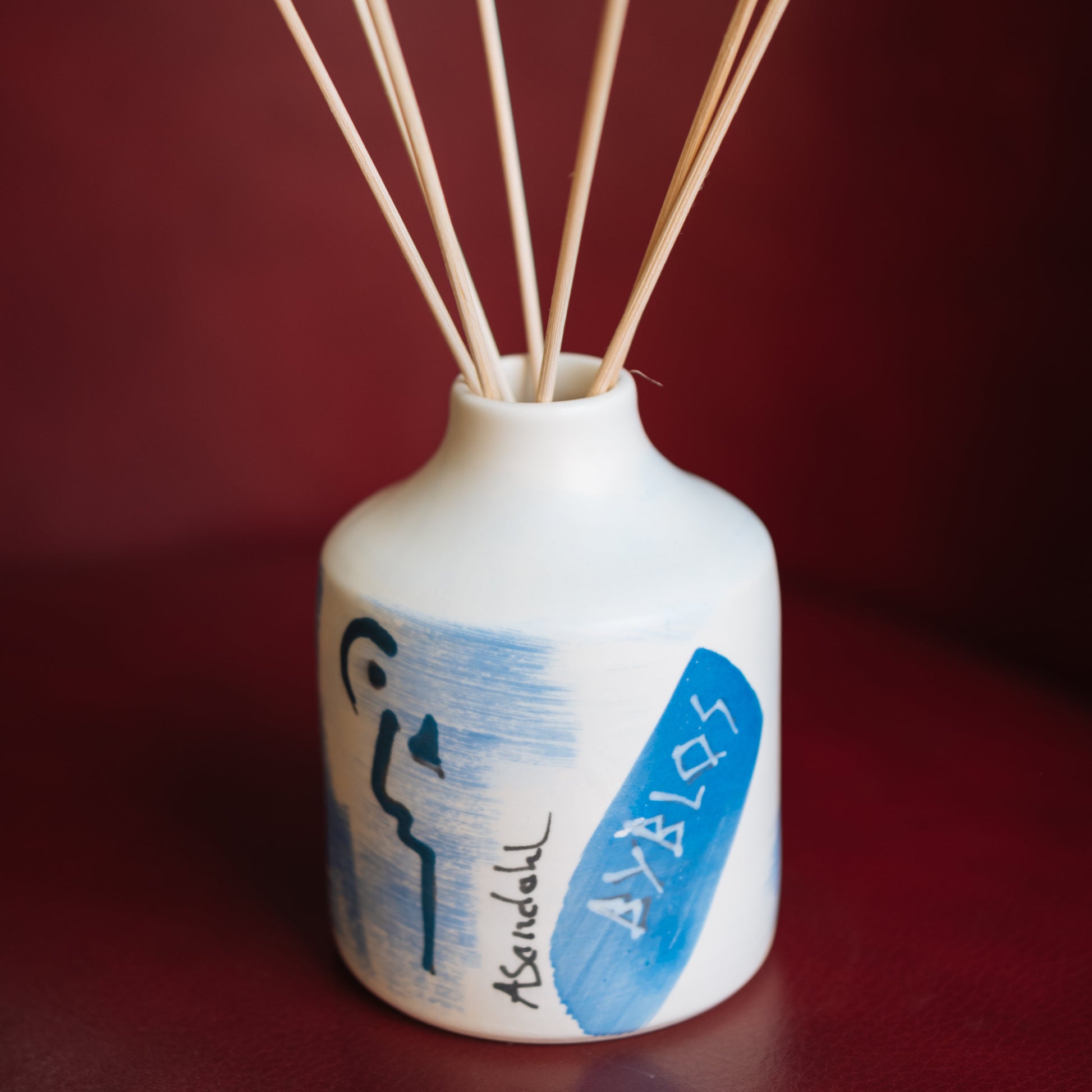 Évadez-vous au Byblos avec ce diffuseur en céramique de 220 ml, façonné à la main par la céramiste Agnès Sandahl dans ses ateliers de Vallauris. Une création exclusive pour le Byblos.