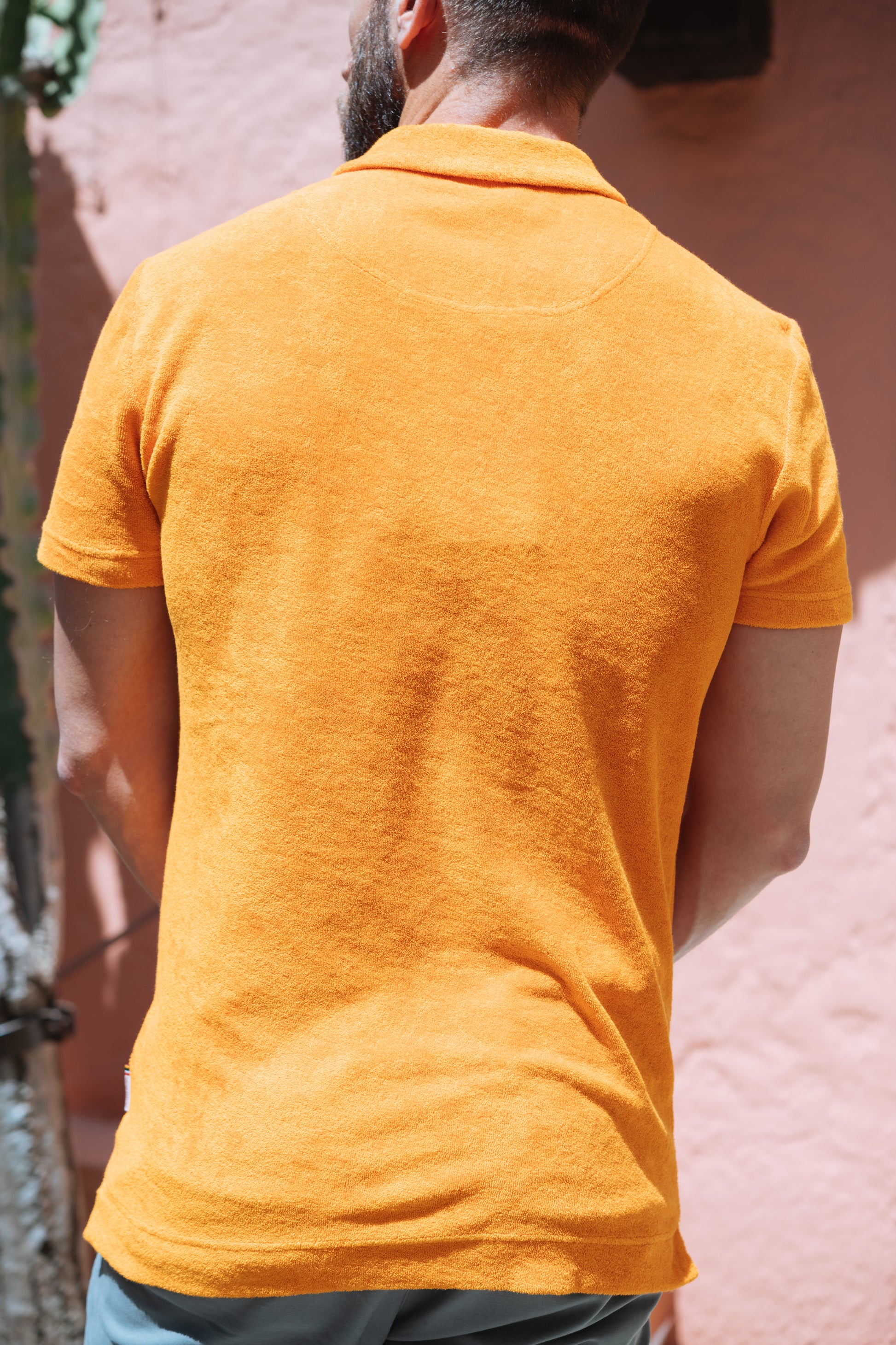 Idéal pour compléter vos tenues de plage, ce modèle en collaboration avec Orlebar Brown se décline dans un bleu "navy" ou orange éclatant, qui s’accordent parfaitement avec un short de bain.